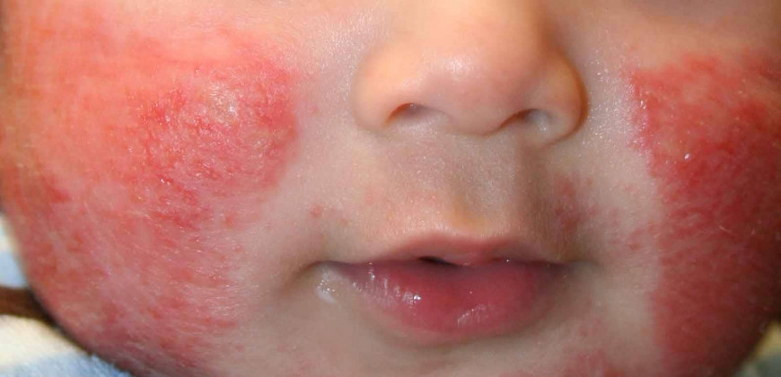 Bebeklerde ilk aylarda yanaklarda kızarıklık, kaşıntı ile seyredebilir. Beraberinde besin alerjisi olabileceği unutulmamalıdır.